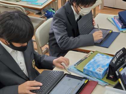 お互いに動画を撮りあい、出来を確認します。まだまだ作成過程。どんどんクオリティを上げるべく、ブラッシュアップを重ねていきます。英語での表現の幅を広げていきましょう。