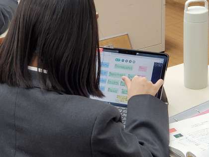 「モアイは語る」という教科書の題材をもとに、筆者の論理の展開を精査してきました。問いや根拠となる部分をピックアップし、ロイロノートで論理の展開を図式化していきます。今日は、筆者がいう根拠や展開が「本当に正しいのか」と自身で問いかけて、客観的な視点から吟味しました。