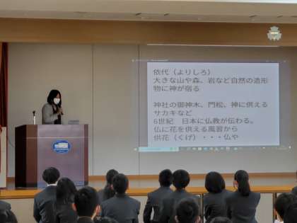 華道体験が来週10日(火)に近づいてきました。今日は華道の歴史を振り返るとともに、生け花の基本的作法について学びました。経験したことがある人も数名いましたが、初めての体験の人が大半でした。貴重な体験です。十分準備して当日を迎えたいものです。あなたはどんなイメージで花を生けますか?