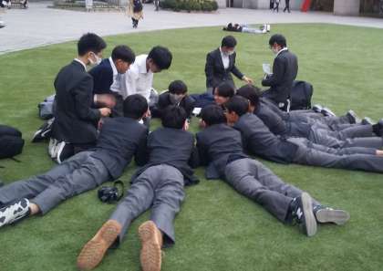 都庁の広場で休憩(C組)