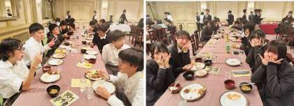 普段の学校で昼食を食べるのとは少し違った雰囲気があります。同じ方向に向かって進む仲間とともに、同じ釜の飯を食うのはやっぱりいい気分です。