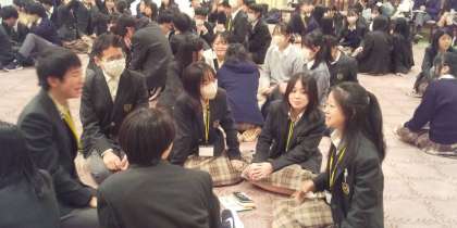 「猛獣狩りに行こう」でグループ分けをして、先生にまつわる〇×ゲームをしました。1チーム6人、最後は2チームの決戦、優勝チームには商品がレク係から渡されました。