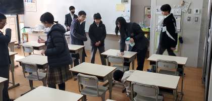 冬休み前の大掃除を行いました。生徒たちは教室や廊下、特別教室など、学校全体を隅々まできれいにしました。普段は気づかないような場所も丁寧に掃除し、みんなで協力して学校をピカピカにしました。新しい年を迎えるにあたり、清潔で気持ちの良い環境でスタートを切ることができるのは、とても素晴らしいことです。家でも自分の身の回りはもちろん、新たな気持ちで新年を迎えられるよう、掃除をしましょう。