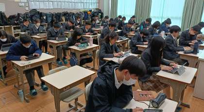この4月に行われる全国学力学習状況調査について、理科はCBTで行われます。システムがきちんと動くのか、当日の状況と同様の条件で、検証を行いました。エントリーできなかったり、途中で切断されたり、動かなくなったりするのではと心配していましたが、まったく不具合は生じることなく終えることができました。普段からタブレットを活用している成果かなと思います。この世代は、共通テストもCBTに移行する可能性があります。すでに当たり前のようにタブレットを日々活用していますが、今後の社会を変容を見据え、うまく付き合っていければと思います。