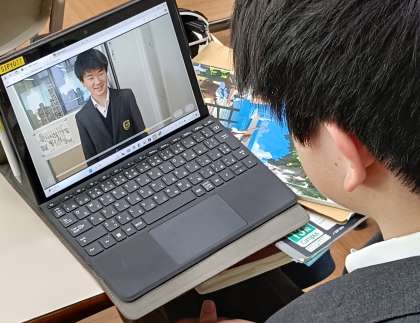 「Over the Horizon」の暗唱をブラッシュアップしています。暗唱はどのようにすればうまくなるのでしょう。今回は、自分で暗唱している様子を動画に撮り、その様子をサイレントの状態でみて、自信の表現力に視点を当てました。意識して話しているはずが、無表情であったり、視線が泳いでいたり、身体が揺れが気になったりと、自分では気づきにくい部分が見えてきました。また、音声を確認したり、相互評価を通して、よりよい暗唱にスキルアップさせていきます。うまくICTを活用して振り返ることで、良いところを伸ばし、気づいた弱点を改善していきます。これらを受け、また家で練習を続けていきましょう。パフォーマンステストが楽しみになってきますね。