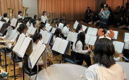 約1時間半に渡って熱のこもった本当に楽しいステージでした。総勢45名の演奏は圧巻でした。特にこの演奏会を最後に引退する9名の3年生にとっては、3学年揃っての中学最後の演奏ということもあり、3年間の成果を立派に披露してくれました。