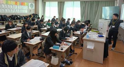 高校の先生がメインで長文読解を指導している場面です。各センテンスで、どこがどこにかかっているのか。文の構造を意識しながら読み解いていきます。分からない単語や文法もありますが、文の構造を意識することで、おおよその意味が分かってきます。また、自制に注意して読むことも大切ですね。