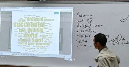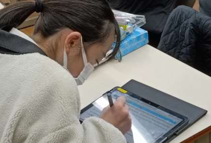 英語で長文を読んでいると分からない(わかりづらい)単語に出くわすことがあります。今日の授業では、Bookroll上で英文を読み、分からない単語に黄色でマーカーを引きました。指導者のタブレットでログパレット(分析ツール)を開くと、全生徒のマーカーの様子が重なって表示されるため、その濃淡で引き具合が見て取れます。また、選択の状況を可視化し生徒に表示することで、指導が必要な単語をヒックアップして解説することが容易になり、時間の短縮につながります。
