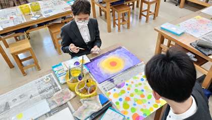 自分の意図に合わせて表現方法を工夫し創造的に作品にあらわすことはできましたか?途中経過を写真に撮って保存しているので、変化を振り返ることができます。それぞれの工夫があふれていて完成が楽しみです。