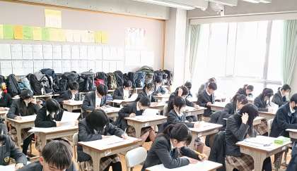 今日は午後から登校です。3年生は西京高校の前期選抜を受検しています。一問一問をかみしめているかのように、解き進んでいます。西京高校で活躍できるのか、一つの指針になります。3年間の成果が見られるといいですね。