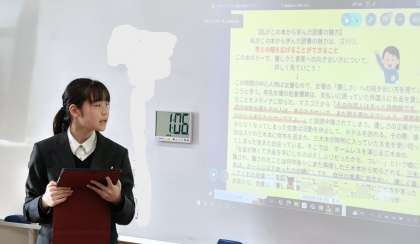 一冊の本から学んだ読書の魅力を語ります。自分が選んだ本について、スライドにまとめ、発声、速さ、視線に気を付けてプレゼンを行います。みなさん、準備万端でとてもよいスピーチでした。僕らの七日間戦争やデルトラクエストなど本当に多岐にわたるジャンルの本が紹介されていて、聞いていてワクワクしました。気になった本はぜひ自分でも読んでみてください。新たな世界が見えるかもしれません。