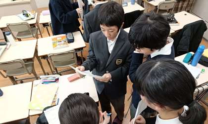 古代と中世の転換期はどこにあると考えますか?墾田永年私財法、平治の乱・保元の乱、守護・地頭の設置、承久の乱を軸に、転換期を探りました。今までの学びを振り返って持論をまとめ仲間と交流します。それぞれの視点があり、納得がいくところといかないところがある中、議論が白熱していました。自分の意見を押し付けるのではなく、仲間の意見に傾聴し、考えを深める姿勢が見られました。