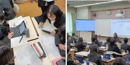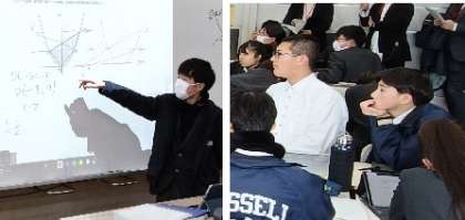 LEAFシステムを用いた授業では、AI先生を活用した自由進度の授業や、ペンストロークを再生し学びの過程を見る授業、マーカーで生徒の傾向を見える化させるなど、いつもの授業をいつも通り発表しました。テンポよく進む授業展開に、ICT活用の良さと課題が見え隠れしていました。