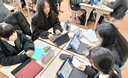 どんどん授業に区切りがついていきます。理科では先日理科室で行った実験を班で振り返り整理をしました。一定の書式にまとめることで、実験の様子やその理論的背景が整理されていきます。この手順をマスターすれば、自分で整理する力がついていきますね。