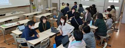 新年度に向けて教職員で研修を行っています。西京の教育の質向上を目指し、意見交流を行いました。