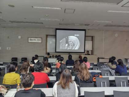 第二回目は鏡師を講師にお迎えし、前半に日本文化において鏡が担う役割、伝統とその変容、そして和鏡の制作過程までをご紹介いただきました。後半には、実際に鏡の原型を手にし、研磨していく作業を行い、貴重な体験をさせていただくことができました。