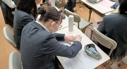 学活では今年度の目標を設定しました。強みを伸ばそうと考える人、弱点を補強しようとする人などいろいろです。時間を守ることや忘れ物をしないといった規範意識に係ること、部活や友達関係、成績など学校に関すること、読書や山登りなど趣味に関することなど、それぞれが少し先を見据え、今と未来をつなげる手立てを模索しています。これからの西京ライフが楽しみです。