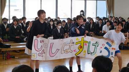 後半は部活動紹介でした。各部活動は限られた時間で趣向を凝らし、自分たちの部活動の魅力を伝えていました。どの部活紹介も興味のそそるもので、新入生はとても悩んでいることと思います。これから部活動体験もありますので、ぜひ直接行って触れて話して感じ取ってください。