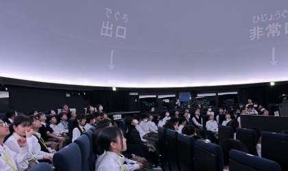 科学センターでは授業の前にまずプラネタリウムを鑑賞します。リクライニングがしっかりしていて、空全域をまるで原っぱで寝そべって見るような感覚になります。