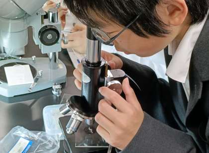 身近な生き物の特徴を調べよう。今日は校内のいろいろな場所から集めた生き物を観察しました。顕微鏡を覗くと世界が違いましたね。ダイナミックな動きや鮮やかな色彩、複雑な形など、驚きや気づきがたくさんありました。また、皆さんのスケッチも丁寧でした。これから身の回りの生き物に対しての見方が変わってきますね。