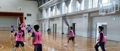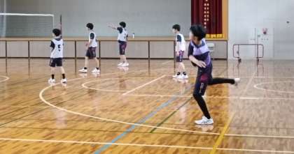 連携プレーができています。みんな大きな声を出しながら、ラリーの応酬になっていました。これこそバレーボールですね。一人一人が自分の役割を意識しながら、必死でボールを追っている姿に、感動しました。なによりも、楽しそうに取り組んでいます。今後、連携が進むと、作戦が立てられるようになり、よりゲームとして面白くなっていくことでしょう。