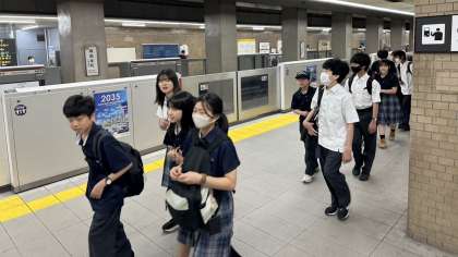西院駅から堺筋本町まで阪急に乗りました。ここから大阪メトロに乗り換えて夢洲に向かいます。大きな混乱もなく、各学年順調に万博に近づいている様子です。楽しみですね。