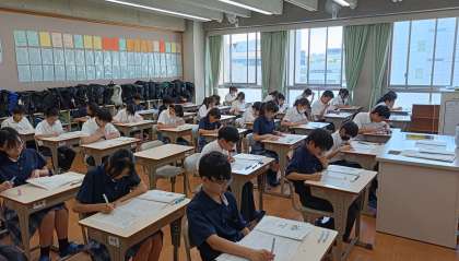 集中してテストを受けています。テストの出来はいかがでしたか?テストを受けるだけでなく、その後の振り返りを大切にしましょう。せっかく準備して受けたテストです。受けただけで終わるのはもったいないですよ。