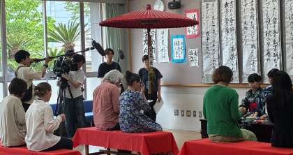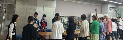 日本の伝統部がスイスから来られた方々をお茶でおもてなししました。英語を交えながらお茶の作法や用語、意味など分かりやすく丁寧に伝えながら、お点前を披露しました。KBS京都やNHKの取材も入り、観客の多い中でのお点前はさぞ緊張したことでしょう。案内したり、お茶菓子をお出ししたりと日本の伝統部全員が協力して行いました。