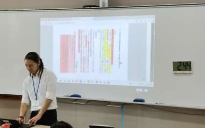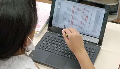 Bookroll上にアップされたPDFの古典の文章について、重要と感じるところには「赤」のマーカーを、分からないところには「黄色」のマーカーを引いてみました。一人一人が引いた場所が集約され、その様子が濃淡で表されます。クラスのみんなの傾向と自身の引いた場所を比較し、授業を進めます。また、友達と画面を比較し、それぞれの引いた意味を共有しながら、考察を深めました。