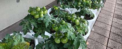 トマトが一部、緑から赤に変わってきました。背の高くならない品種で、丈の成長は見られませんが、実はたわわに実ってきました。その中でも徐々に赤みを帯びてきました。そろそろ収穫の時期ですね。水やり当番の人の献身ですくすくと成長しています。今後が楽しみです。