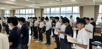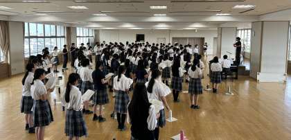 6限にメモリアルホールで学年合唱の練習をしました。まだまだ歌い始めかと思いきや、ピアノ伴奏と指揮との連携もよく、また全体の声もしっかりと出ていて驚きました。これからさらにブラッシュアップされていくのかと思うと、音楽発表会が今から楽しみです。