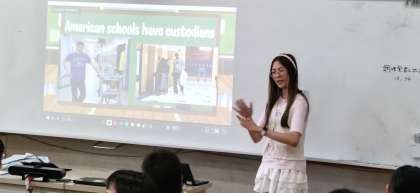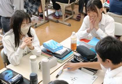 ALTのチェルシー先生とのやりとりもずいぶんとスムースになってきました。グループごとにクイズ形式で質問に答えていきます。グループ内では思わず?英語で交流するなど、コミュニケーションとしての英語力が身についてきました。