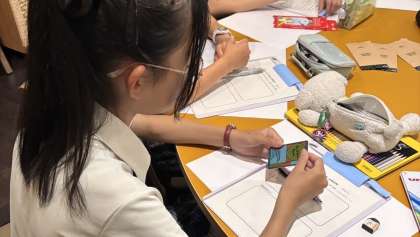 エースホテルでは、ホテルの備品に触れさせてもらったり、新人社員の皆さんが取り組んでいる「ブランドイメージをインスピレーションのまま画用紙に描く」ことに取り組ませてもらったりしています。