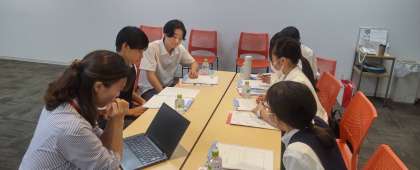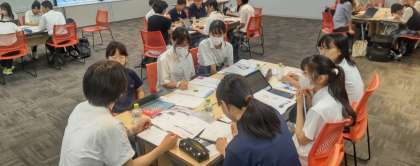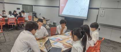 リサーチパークチームの様子です。社員の方が一人ずつ各グループについてくださり、生徒の質問に答えていただいています。活発な意見交換が行われているようです。