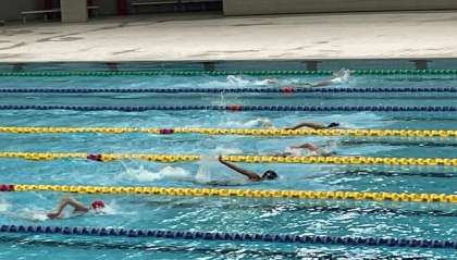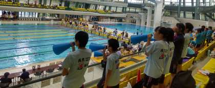 夏季大会(水泳)がアクアリーナで行われました。春季大会での結果を踏まえ、暑い日差しのもとプールで練習を積んできました。これまで泳いだことのない距離にチャレンジするなど、各自が課題をもって大会に臨みました。