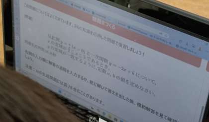 今日はシステムの扱い方について反比例の問題で練習をしてみました。人によって生成される問題の違いに気づくことができましたね。意外と難しい問題も提示されるのだと感じました。さぁ、夏休み課題に対しては、実際にどんな問題が生成されてくるのか。夏休みが楽しみですね。