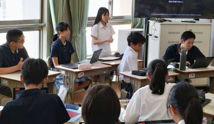 「東京の一極集中は是か非か」日本にもたらすことは何かを考え、自らの立場を明確にしてディスカッションしました。写真でも分かるように、東京一極集中の賛成派が極端に少ない形でのディベートでしたが、それぞれ根拠を明示しながら話す様子はとても誠実で納得のいくものでした。片方の意見を聞くと納得し、また一方の意見を聞くと納得するといった流れで、なかなか結論が出るものではありませんでしたが、理解が深まっていく様子が見て取れました。これからの日本を支える君たちに、よく考えてほしい議題ですね。