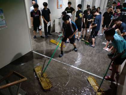 急な事態にも関わらず、高校生の協力もあり何とか無事排水ができ、事なきを得ました。災害はいつ何時起きるかわかりません。登下校時も含め、場と状況に応じ自分の命を守る判断と行動ができるよう、日々意識をしておきましょう。当日の排水及び翌日の事後処理に協力してくれた生徒のみなさん、ありがとうございました。