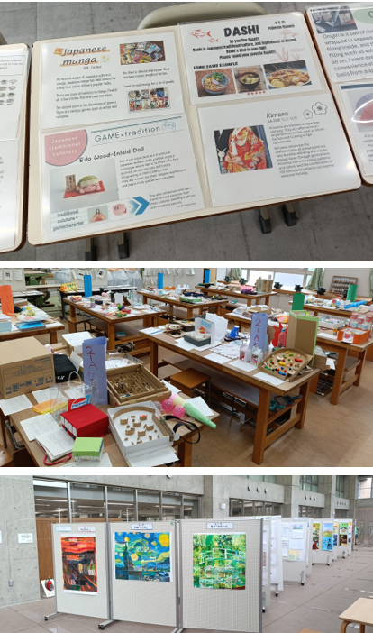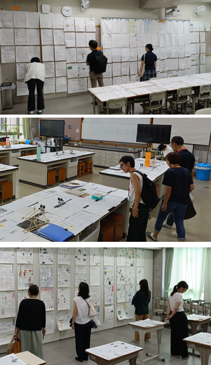 各教科ごとそこかしこで展示されています。夏休み前に授業て取り組んでいたものや夏休みの宿題が主です。ぜひ仲間の作品を見てください。また、後輩や先輩の作品を見ると、いい刺激になるかもしれません。