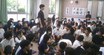 昨日は各劇ごとに、振り返りを行いましたが、今日は全体で M8の振り返りを行いました。中央委員で作成した劇にまつわるクイズをカフートを使って行い、クイズの関連したところで監督から一言がありました。他学年からの振り返りでも3年生の劇をすごいと感じてくれたことがうかがえましたが、今日の監督や実行委員長からの話から、自分たちも手ごたえを感じ、集大成の劇という実感があったということが伝わってきました。短い期間ですばらしいM8に仕上げてきた3年生のみなさん、お疲れさまでした!