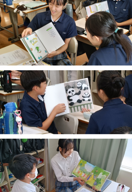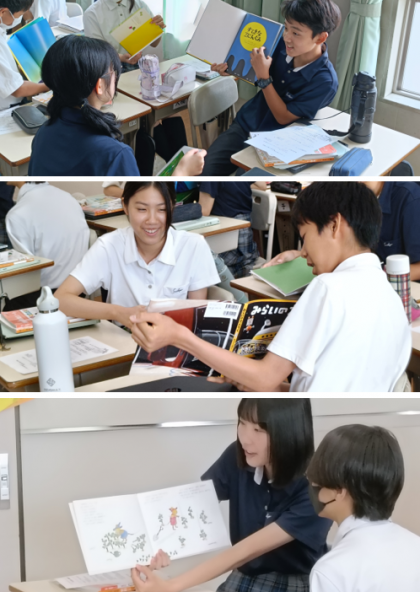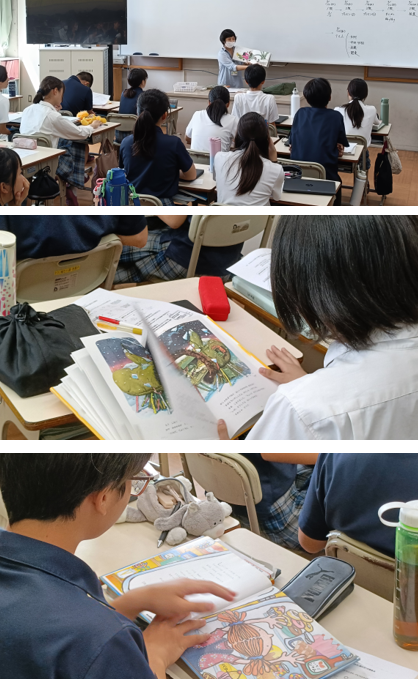 今日は京都市立右京図書館の職員の方をゲストティーチャーとしてお招きし、絵本の読み聞かせの手法について教えていただきました。絵本を読んでもらったり自分で読んだことはあっても、なかなか読み聞かせる機会はありません。10月に安井幼稚園の児童に向けた保育実習に向けて、準備を進めているところです。右京図書館と本校の図書館にある絵本を生徒がペアになって互いに読聞かせの練習をしました。絵本が配られると、「これ読んだことがある」「懐かしぃ」などそこかしこで声が上がりました。久しぶりに触れる絵本に、当時の思い出がよみがえっているようでした。読書の経験は、内容だけでなく時間とも結びつける力がありますね。どうすれば児童に伝えることができるのか。授業での学びを実践につなげていきましょう。
