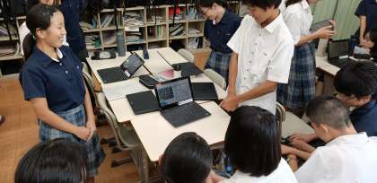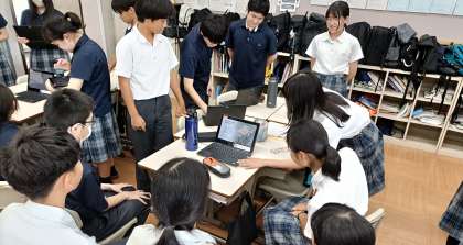 内容はもちろんのこと、資料の作り方で伝わり方は大きく左右されます。国語の授業では、聞き手の心を動かす説得力のあるプレゼンをすることを目指し、相互評価を行いました。明日京都FWで訪れる事業所や官公庁において、提示する資料を最終調整を兼ねています。少し緊張している様子でしたが、明日の本番に向けてみなさん真剣そのものです。