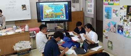 琳派の技法を用いてオリジナルの屏風を作る【1年美術】