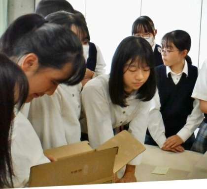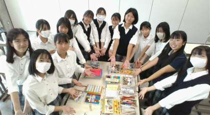その後、夏休み前から有志を中心に学年ごとに呼びかけて文房具の回収をしていたのを、仕分けしました。取組に賛同した多くのみなさんから、鉛筆、色鉛筆、クレヨンなどたくさんの文房具が集まりました。また、郵送費に使ってもらう書き損じハガキもあります。(郵便局で切手に交換してもらいます。)