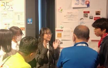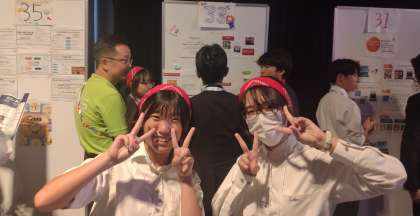 5月の万博に向けて、3月に実施した万博講演会のワークショップで「未来のレストラン」について考えました。そこでの発案が形となり、昨日万博会場フェスティバル・ステーションにてポスターセッションが行われました。インターンシッププロジェクト「未来の外食を考える」として、留学生を含む大学生たちが実現可能性を見込み企画に昇華させています。自分たちの考えた提案が、実際に企画となり社会に発信されていくことに、身近に関わることができました。会場は大変な熱気で、ポスターの周りは常に人だかりでした。約2時間にわたり大学生とともに企画をアピールしました。