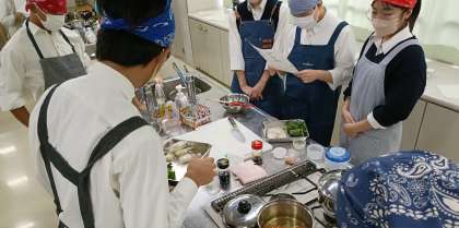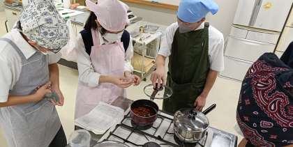 和食の基本「だし」をとり、おいしく、安全に、環境にも配慮して雑煮を作ろう!という目標は達成できましたか?校舎いっぱいに、だしのいい匂いが広がっていました。班で役割を分け、自分の仕事を責任を持って取り組むとともに、チームで協力しながら調理を進めていました。おいしく出来上がりましたか?この経験をぜひこの年末年始に生かしてほしいと思います。