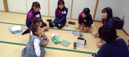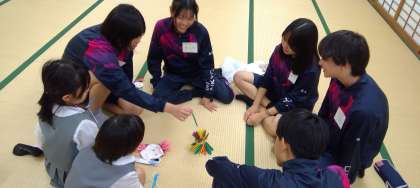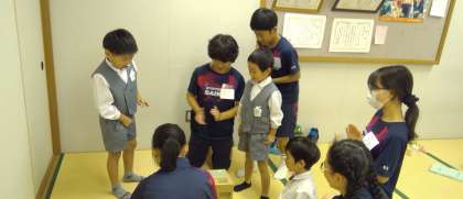 本校2年生が、安井幼稚園の年長園児さんをお迎えし、ふれあい活動を行いました。児童たちは、事前にグループで考えた遊びの内容に沿って、それぞれが工夫して作ったおもちゃを使いながら園児さんと交流しました。
