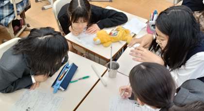 生徒たちは、コップの表面に水滴ができる理由が「空気中の水蒸気が冷やされて液体になる現象(凝結)」であることを、実際の温度変化とともに体感しました。身近な現象を科学的に捉える力を養う貴重な機会となりました。