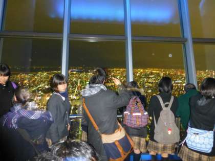 昨夜、3年生諸君は東京スカイツリーを訪れました。