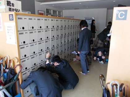 下足箱や教室、廊下などを丁寧に掃除していました。この4月からは西館から本館へと教室も変わります。気持ちを新たにする上でも、大切な取り組みです。